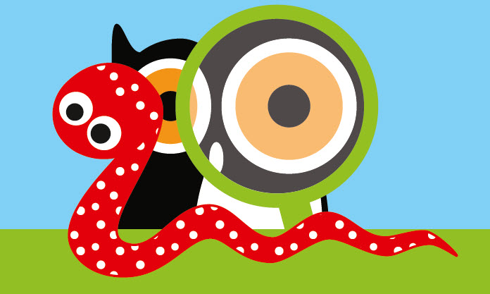 Misschien heb je er wat aan, als je bijvoorbeeld op marktplaats een kameleon boek te koop ziet staan, maar je weet niet welke serie het is. Als je dit ziet gebeuren, neem je kameleon dan mee naar de dierenarts om hem te laten onderzoeken. Teken met een zwarte oliepastel een cirkel voor het oog.